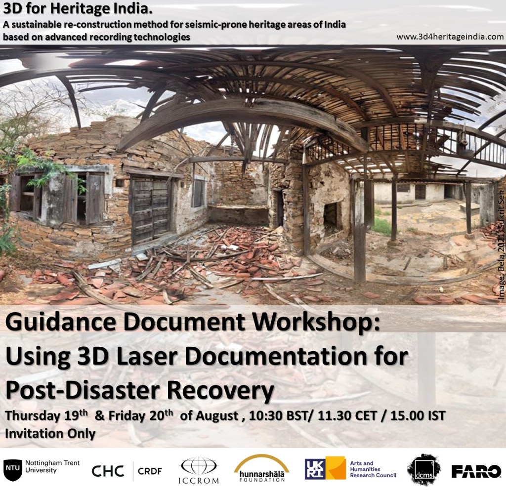 One of the key aspects of our research initiative ‘A sustainable re-construction method for seismic-prone heritage areas of India based on advanced recording technologies’ is the preparation of the Guidance Document. The document aims to provide strategies and procedures for post-disaster survey and assessment using 3D laser scanning technologies that can be applied to seismic heritage settlements, tested in the case of Bela, Gujarat.