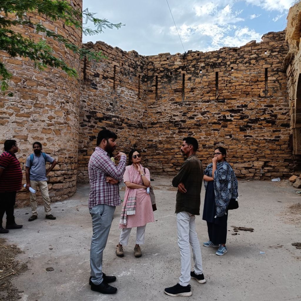 CHC Team, along with the team from GIDM and the Hunnarshala Foundation visited Bela, Kutch, in the first week of May 2023 for Phase 3 of the project. The site visit involved discussions with the community, on-site understanding of the digitally documented structures in phases 1 and 2, identifying structures that can work as a prototype for demonstration of post-earthquake repairs/ reconstruction techniques and initial on-ground data collection for preparation of a disaster management plan. The visit also involved discussions with the government authorities.