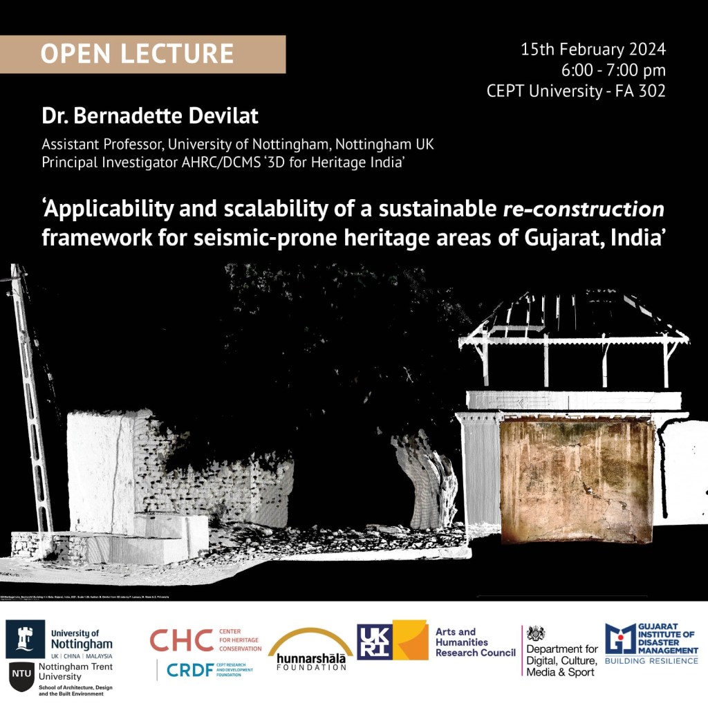 After an introduction by Saatvika Pancholi, the presentation summarised the latest phase of this research project, which studied the applicability and scalability of the framework developed in previous phases by creating a disaster risk management plan for Bela, a re-construction map and building a prototype, as a tangible example of repair strategies.