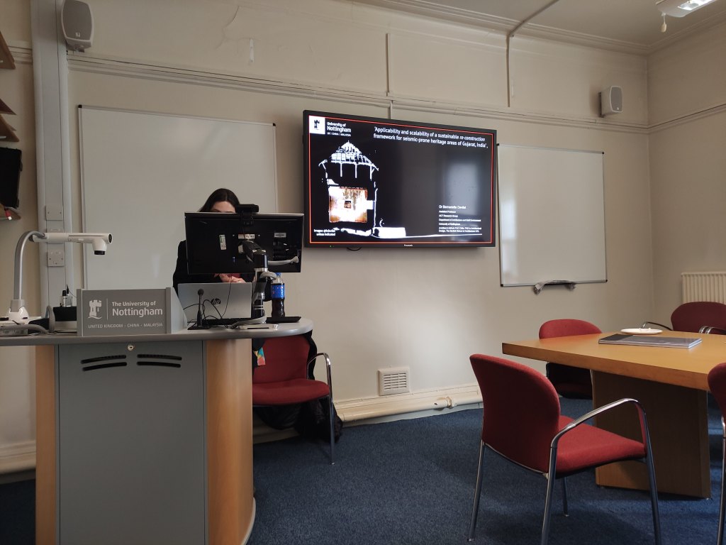 After an introduction by Professor Jonathan Hale, the presentation summarised the latest phase of this research project, which studied the applicability and scalability of the framework developed in previous phases by creating a disaster risk management plan for Bela, a re-construction map and building a prototype, as a tangible example of repair strategies.
